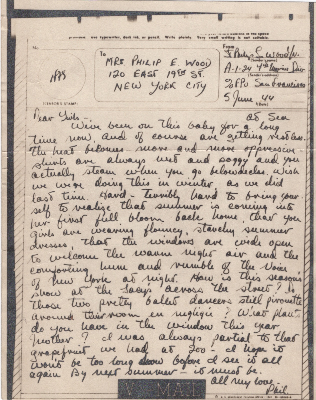 [1] Gretchen Wood’s compilation of Phil’s letters gives the date of 15 June 1944 – D-Day on Saipan. This led to an earlier assumption that this was Phil’s last letter home.