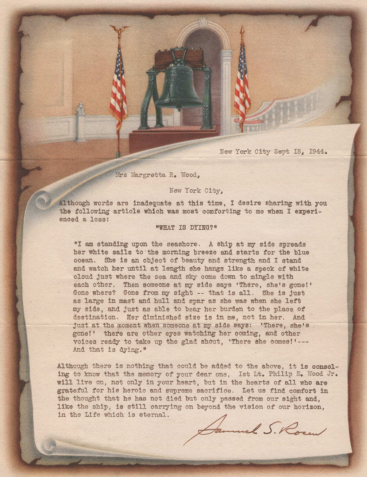 A comforting message for Margretta Wood. "Samuel S. Rosen" is unknown.