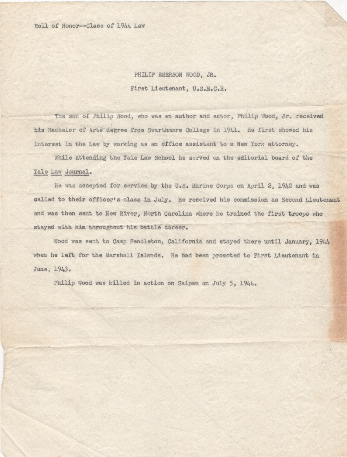 The photographs, articles, and ephemera below were saved by members of Phil Wood's family.