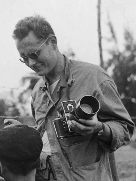Stanley Troutman wore Marine dungarees, but he was no trained warrior. In civilian life he was a professional photographer for Acme Newspictures, covering homicides, film premieres, sporting events, and Hollywood celebrity scandals from Charlie Chaplain to Errol Flynn. The job was a dream come true, and even came with a draft exemption, but Troutman felt guilty about sitting out the war. In early 1944, Acme asked for volunteers to join the War Picture Pool and Troutman jumped at the chance. He received no military training and was not issued a weapon – just a set of green HBTs and a pair of leather boondockers.